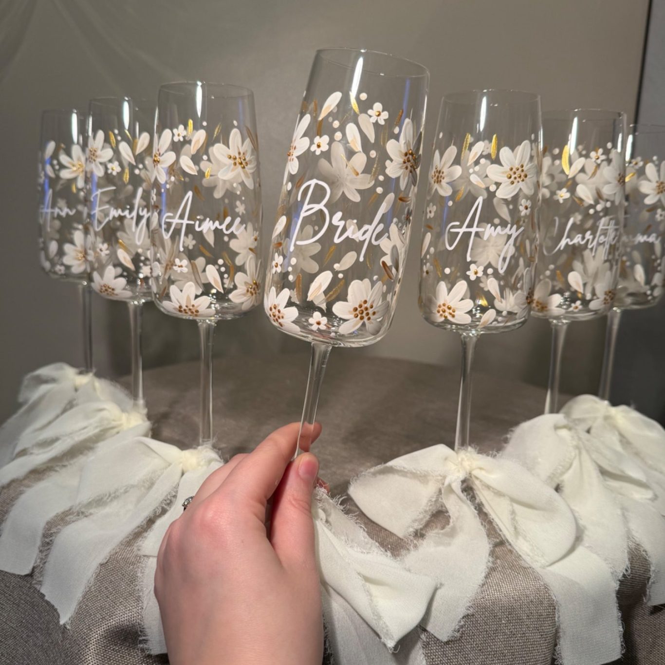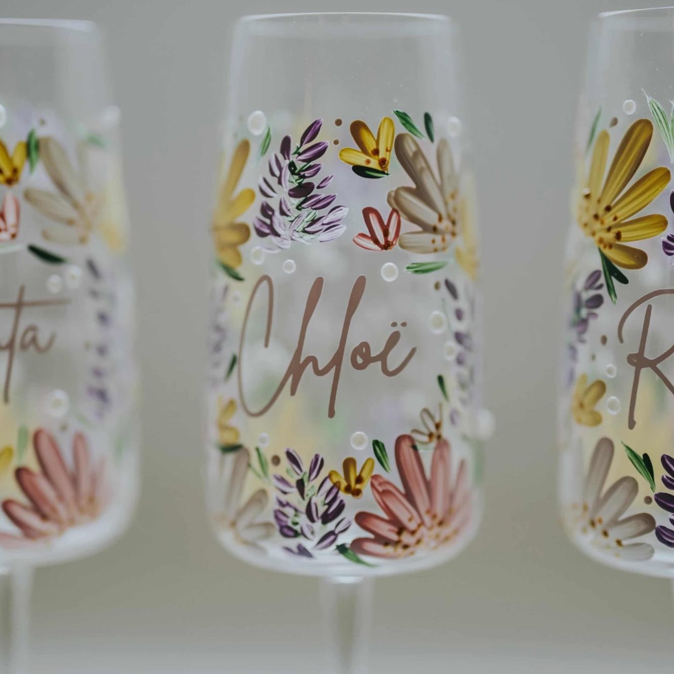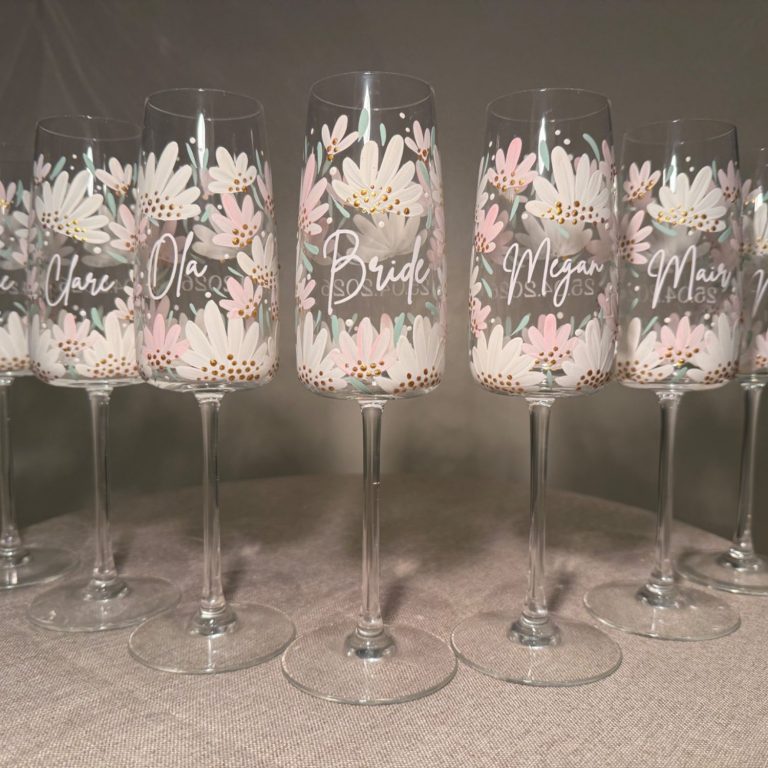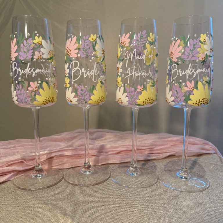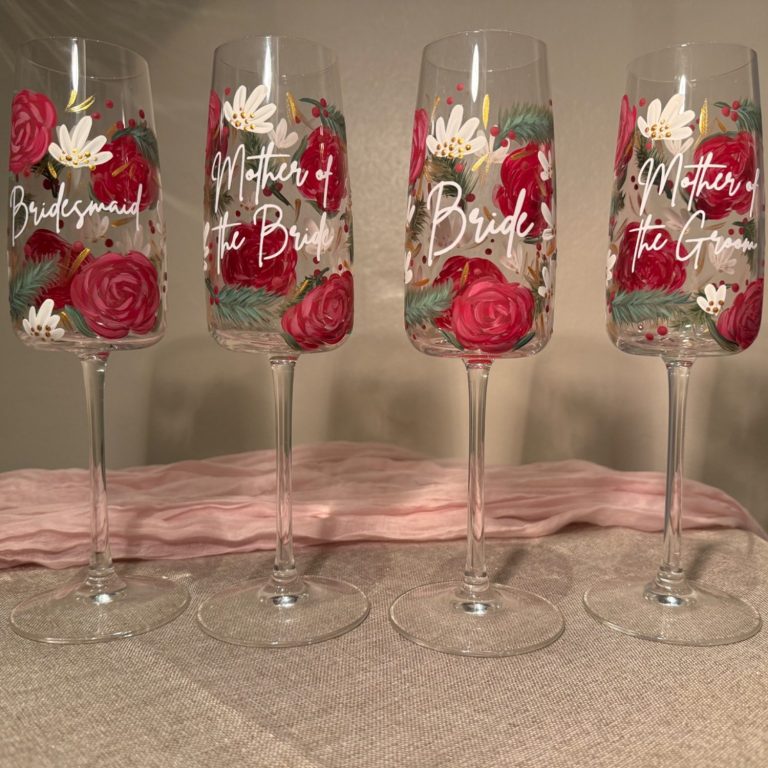 My hand-painted champagne flutes are designed just for you. Each glass is individually crafted with careful detail, making it a perfect gift or keepsake for weddings, anniversaries, birthdays or special occasions.